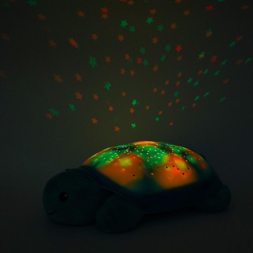 Cloud B Twinkling Twilight Turtle Aqua Nachtlicht mit Sound 7323-T2Der Twinkling Twilight Turtle ist eine neue Variante unseres preisgekrönten Twilight Turtle!Die Twinkling Twilight Turtle ist eine neue Variante unseres preisgekrönten Twilight Turtle! Mit 2 beruhigenden Melodien und 100 Sternen, die ein- und ausschalten, projiziert die neue Turtle mehrere bunte Sternenmuster an die Decke und erzeugt eine mehrfarbige Lichtshow auf dem Panzer.Eigenschaften:- Spielt 2 Melodien: Delphin-Träume, Clair De Lune- Projiziert einen „Twinkling“-Sterneffekt und 2 weitere lustige Effekte!- Kann in 3 statischen Farben projizieren: Bernstein, Blau und Grün- Projiziert 8 Konstellationen beim Projizieren einer einzigen Farbe- Einstellbare Lautstärke- Automatische Abschaltung nach 45 Minuten- 3 AA-Batterien (nicht enthalten)- Star Guide hilft bei der Identifizierung von Sternbildern, wenn eine einzelne Farbe projiziert wirdWas ist in der Schachtel- Funkelnd Twilight Turtle- SternbildführerZusätzliche Informationen- Abmessungen: 21 x 11 x 28 cm- Alter: 0+