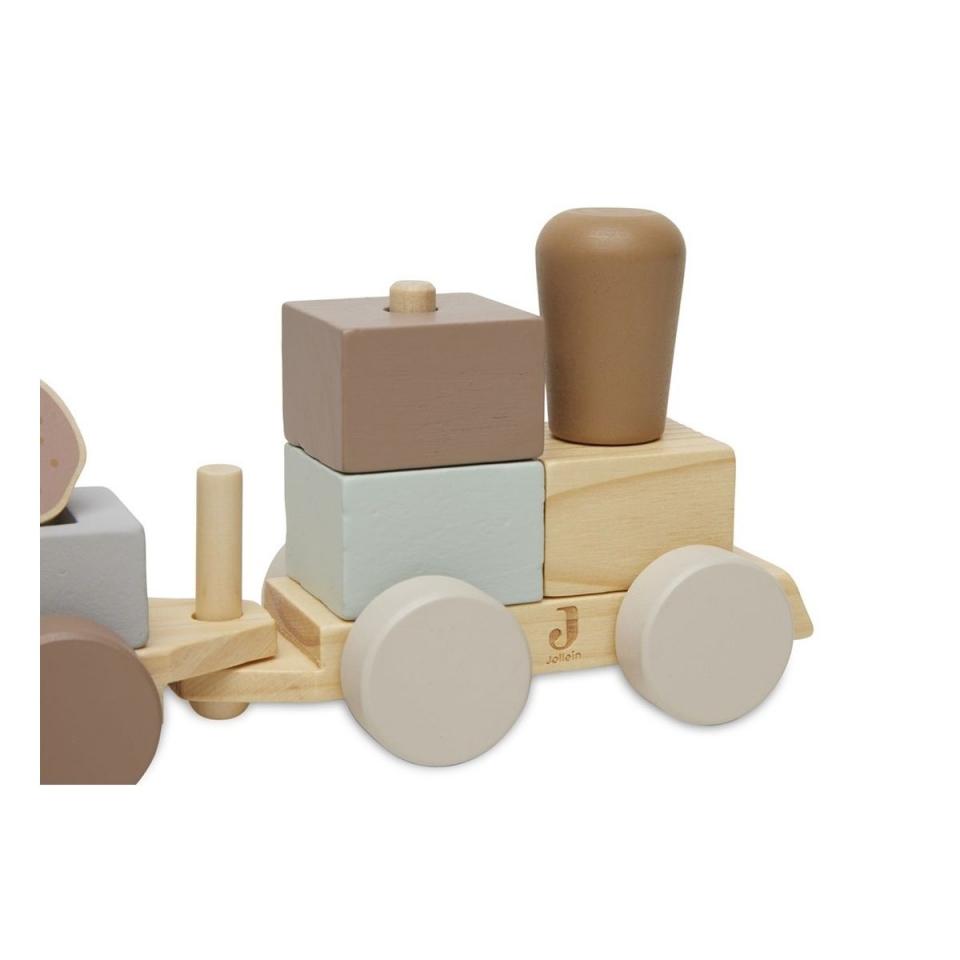 Jollein Holzeisenbahn 45×12 cm FarmTschu, tschu: Da fährt der Zug! Diese lustige Holzeisenbahn bietet viele Spielmöglichkeiten. Natürlich kann die Holzeisenbahn fahren. Die Lokomotive und zwei Waggons sind fest miteinander verbunden, können aber auch voneinander gelöst werden. Dein Kind kann einen Waggon schnell lösen, muss aber seine Feinmotorik trainieren, um den Waggon wieder anzubringen. Das Spielen mit der Eisenbahn und den Bausteinen regt die Sinne des Kindes an und fordert es zum Entdecken, Fühlen, Schauen und Wiedererkennen auf. Damit lernt das Kind spielerisch, Formen und Farben zu benennen. Auch Tiere sind in dem Set enthalten, sie können in den Waggons transportiert werden. Dein Kind kann seiner Fantasie freien Lauf lassen. Das Set mit dem Zug enthält die Tiere, die auf dem Bauernhof leben. Zum Beispiel ein Pferd, ein Schaf, eine Ente, außerdem ein Baum und ein Apfel. Schön zu kombinieren mit dem Puzzle aus Holz oder dem Spiel-Würfel aus Holz.Holzspielzeug KollektionSchau mal, wie schön! Die Holzspielzeug Kollektion von Jollein hat Zuwachs bekommen. In dieser Kollektion gibt es unter anderem ein Puzzle aus Holz, einen Spiel-Würfel aus Holz und eine Holzeisenbahn. Alle Artikel orientieren sich an der Realität, es gibt auch lustige Tiere. Die Spielzeuge sind in neutralen Farben gehalten und alle Artikel sind aus 100 % FSC-Holz hergestellt. Super schön als Geburtstags- oder Babygeschenk!FarbeDie Holzeisenbahn ist in neutralen Farben gehaltenFormat45 x 12 cm.MaterialHergestellt aus 100 % FSC-Holz.